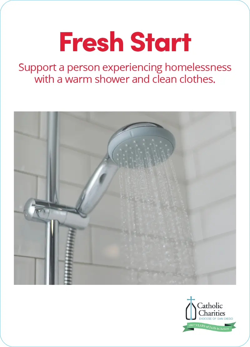 Catholic Charities Diocese of San Diego exists to exemplify the scriptural values of mercy and hospitality by Witnessing the gospel message contained in “Matthew 25:“; to advocate for a just society by Calling individuals and institutions to action on behalf of the poor, the vulnerable and the marginalized; and to acknowledge the sacredness of the human person by Accompanying those we serve on their journey toward achieving their full potential as persons created in the image and likeness of God.